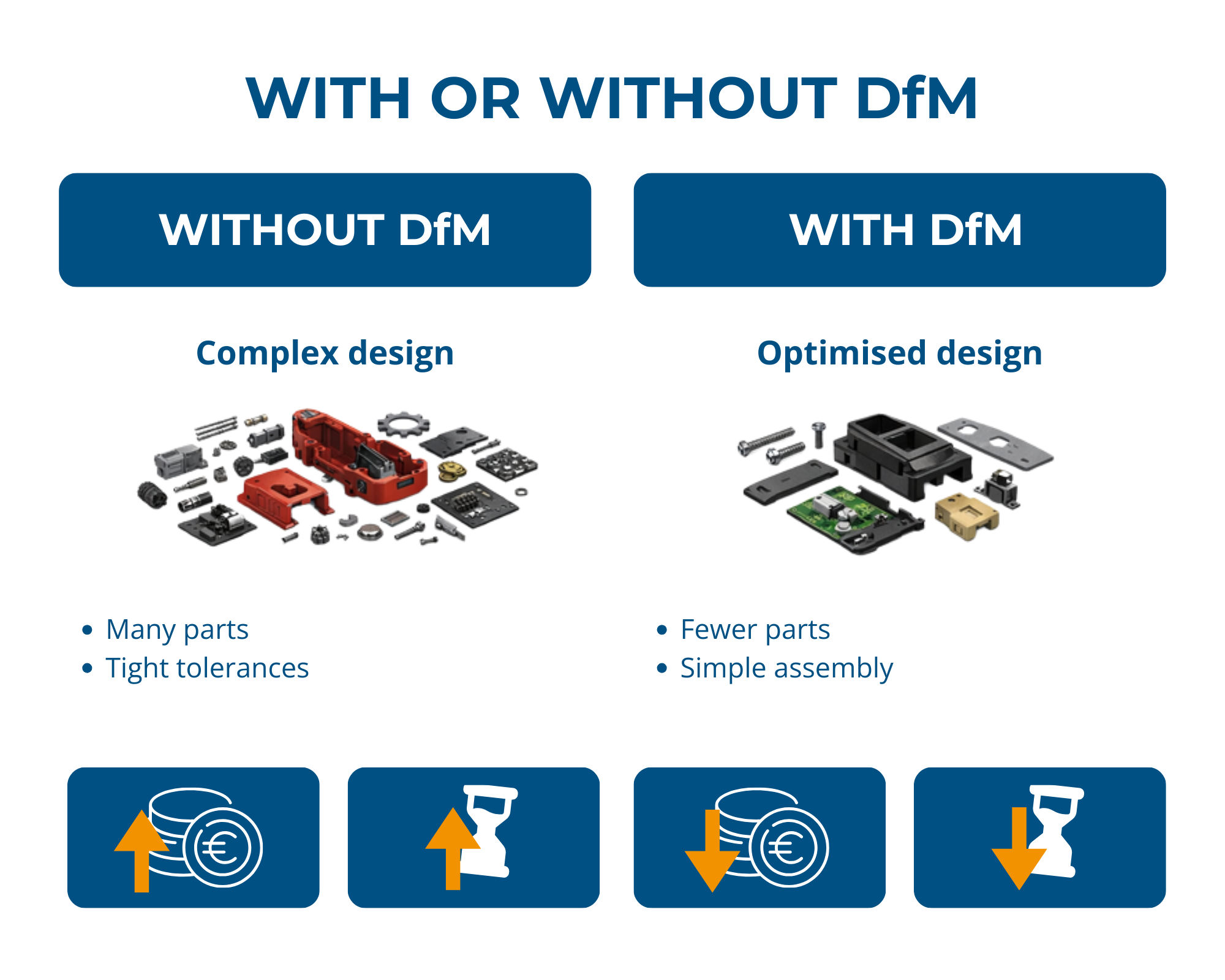 Design for Manufacturing is part of a broader Design for Excellence (DfX) approach. It ensures that a product is not only functional, but also manufacturable, scalable and economically viable. Every decision in the product design is therefore evaluated for its impact on, testing and long-term reliability.